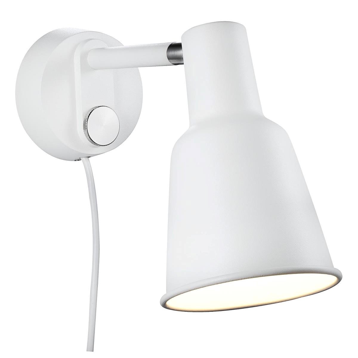 Seinävalaisin. Väri: valkoinen.Max 15W LED. E27. Sisältää himmentimen. Ei sis. valonlähdettä. Materiaali: metallia. Korkeus: 19 cm, leveys: 24 cm (varjostimen halkaisija 12 cm, johto: 180 cm. Myös kiinteään asennukseen. Designed by Bønnelycke md