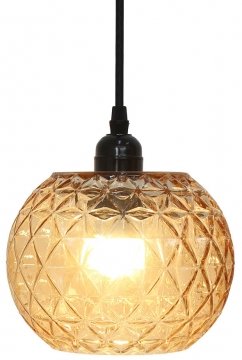 Lasinen kattovalaisin, kangasjohto 3 m, valaisinpistoke ja kattokuppi.