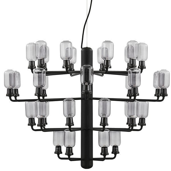 Simon Legaldin Normann Copenhagenille suunnittelema Amp-kattokruunu koostuu Legaldin Amp-lamppujen pienoisversioista sekä varrellisesta teräsrungosta, jotka yhdessä muodostavat lumoavan elementin esimerkiksi olohuoneen keskipisteeksi tai ruokapöydän ylle. Ilmeeltään Amp on hyvin moderni, mutta se huokuu samanaikaisesti nostalgista tunnelmaa. Kattokruunun lasiset varjostimet päästävät lävitsensä pehmeää valoa, joille marmorinen kanta ja teräsrunko luovat upean kontrastin. Amp-kattokruunua on saatavilla kolmessa eri värissä ja kahdessa eri koossa: pienempänä 15 lampun mallina sekä suurempana 35 lampun versiona, joka sopii erityisesti avarien huoneiden, korkeiden käytävien ja suurten julkisten tilojen katseenvangitsijaksi.