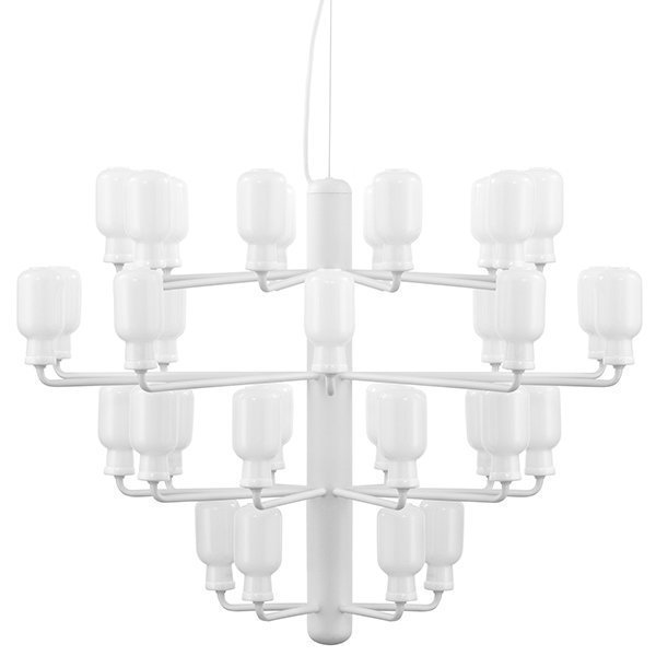 Simon Legaldin Normann Copenhagenille suunnittelema Amp-kattokruunu koostuu Legaldin Amp-lamppujen pienoisversioista sekä varrellisesta teräsrungosta, jotka yhdessä muodostavat lumoavan elementin esimerkiksi olohuoneen keskipisteeksi tai ruokapöydän ylle. Ilmeeltään Amp on hyvin moderni, mutta se huokuu samanaikaisesti nostalgista tunnelmaa. Kattokruunun lasiset varjostimet päästävät lävitsensä pehmeää valoa, joille marmorinen kanta ja teräsrunko luovat upean kontrastin. Amp-kattokruunua on saatavilla kolmessa eri värissä ja kahdessa eri koossa: pienempänä 15 lampun mallina sekä suurempana 35 lampun versiona, joka sopii erityisesti avarien huoneiden, korkeiden käytävien ja suurten julkisten tilojen katseenvangitsijaksi.