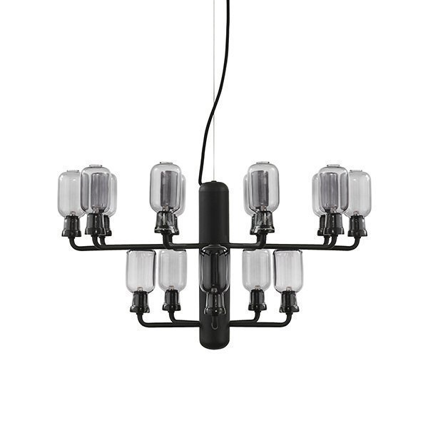 Simon Legaldin Normann Copenhagenille suunnittelema Amp-kattokruunu koostuu Legaldin Amp-lamppujen pienoisversioista sekä varrellisesta teräsrungosta, jotka yhdessä muodostavat lumoavan elementin esimerkiksi olohuoneen keskipisteeksi tai ruokapöydän ylle. Ilmeeltään Amp on hyvin moderni, mutta se huokuu samanaikaisesti nostalgista tunnelmaa. Kattokruunun lasiset varjostimet päästävät lävitsensä pehmeää valoa, joille marmorinen kanta ja teräsrunko luovat upean kontrastin. Amp-kattokruunua on saatavilla kolmessa eri värissä ja kahdessa eri koossa: pienempänä 15 lampun mallina sekä suurempana 35 lampun versiona, joka sopii erityisesti avarien huoneiden, korkeiden käytävien ja suurten julkisten tilojen katseenvangitsijaksi.