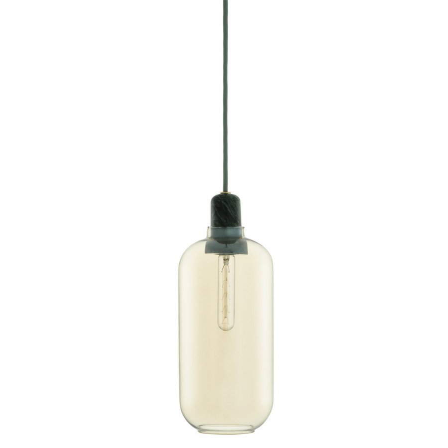Amp kattovalaisin Normann Copenhagen. Muotoilijana Simon Legard. Tämän valaisimen inspiraatio juontaa 1960-luvun putkivahvistimista. Valaisimen ainutlaatuinen muotoilu ja klassiset ylelliset materiaalit marmorista ja lasista luovat nostalgisen, mutta samanaikaisesti modernin tunteen. Valaisimen koristeellinen hehkulamppu antaa lämpimän ja miellyttävän valon ja sen siro lasivarjostin toimii erinomaisena kontrastina raskaaseen marmoriin yhdistettynä. Läpinäkyvä lasikupu antaa valon loistaa joka suuntaan, luoden tunteen että se visuaalisesti vie hyvin vähän tilaa tehden siitä monikäyttöisen ja helposti sijoitettavan. Valaisin on kaunis keittiöön ripustettuna, olohuoneen nurkassa tai eteisessä. Kaunis yksinkertaisuudessaan ja erittäin upea monikossa.