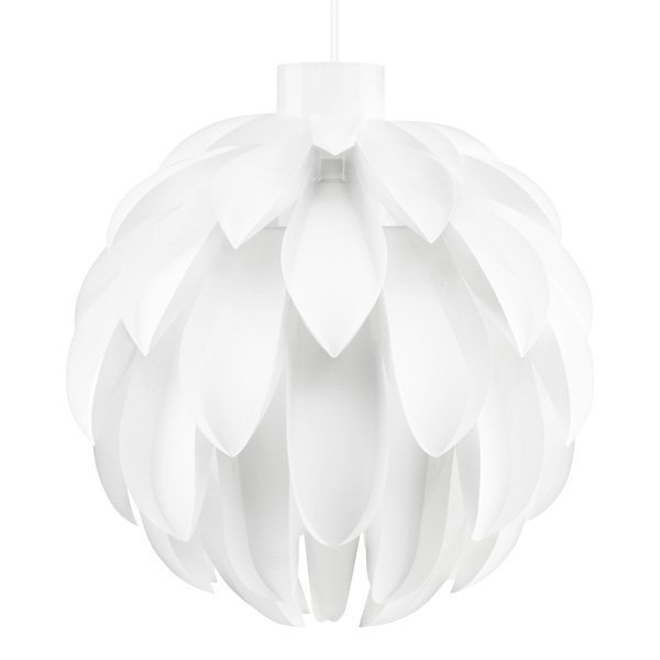 Simon Karkovin suunnittelema Norm 12 -valaisin on saanut nimensä suunnitteluvuodesta, 2012. Näyttävä varjostin jatkaa Normann Copenhagenin vuonna 2002 julkistaman Norm 69 -valaisimen suosion viitoittamalla tiellä. Kokoamiseen ei tarvita mitään työkaluja, vaan se taitellaan ja kootaan ohjeiden mukaan. Karkov on saanut inspiraation luonnosta ja kasveista, ja se näkyy selvästi varjostimen orgaanisessa muodossa. Kaartuvat ja päällekkäin menevät varjostimen osat tuovat mieleen esimerkiksi apilan kukan. Valo suodattuu pehmeästi varjostimen läpi. Valaisin on saatavilla kahdessa eri koossa. Pienempi Norm 12 sopii erinomaisesti esimerkiksi ruokapöydän päälle, sillä se ei häikäise. Isompi malli sopii taas vaikkapa makuuhuoneeseen. Veistoksellinen muotokieli ja ajaton, mattavalkoinen pinta sopivat monenlaisiin sisustuksiin. Huomaathan, että valaisimen kattokuppi ja johto myydään erikseen.