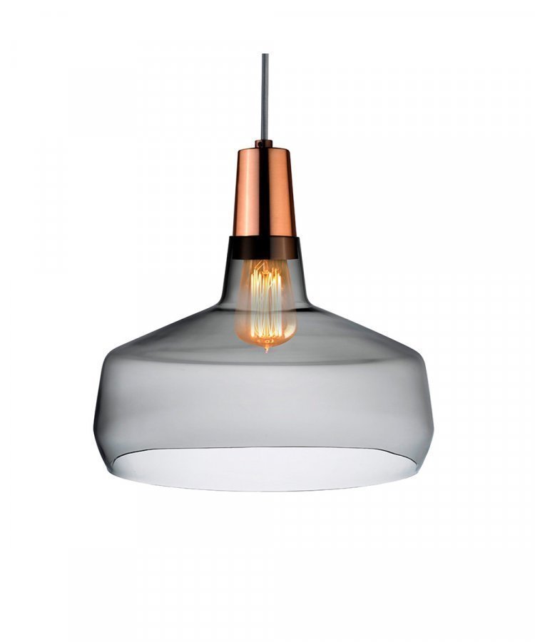 Design: Nude. Konsepti: Nude on erikoistunut lasista valmistamiseen. Riippuvalaisimen lasi on puhallettu heidän omassa tehtaassa Istanbulissa. Lasin lisäksi valaisimessa on lakattua kuparia niin kannassa kuin kattokupissa. 2,5 metrinen kuitukaapeli steel grey värissä. Käytä maksimissaan 40 watin lamppua. Riippuvalaisimen designissa näkyy selkeästi merkin ihastus lasiin. Valaisimen materiaalien, lasin ja hehkuvan kuparin, selkeä kontrasti tekee valaisimesta näyttävän. Ripusta se ruokapöydän ylle ja nauti valon leikistä lasissa.