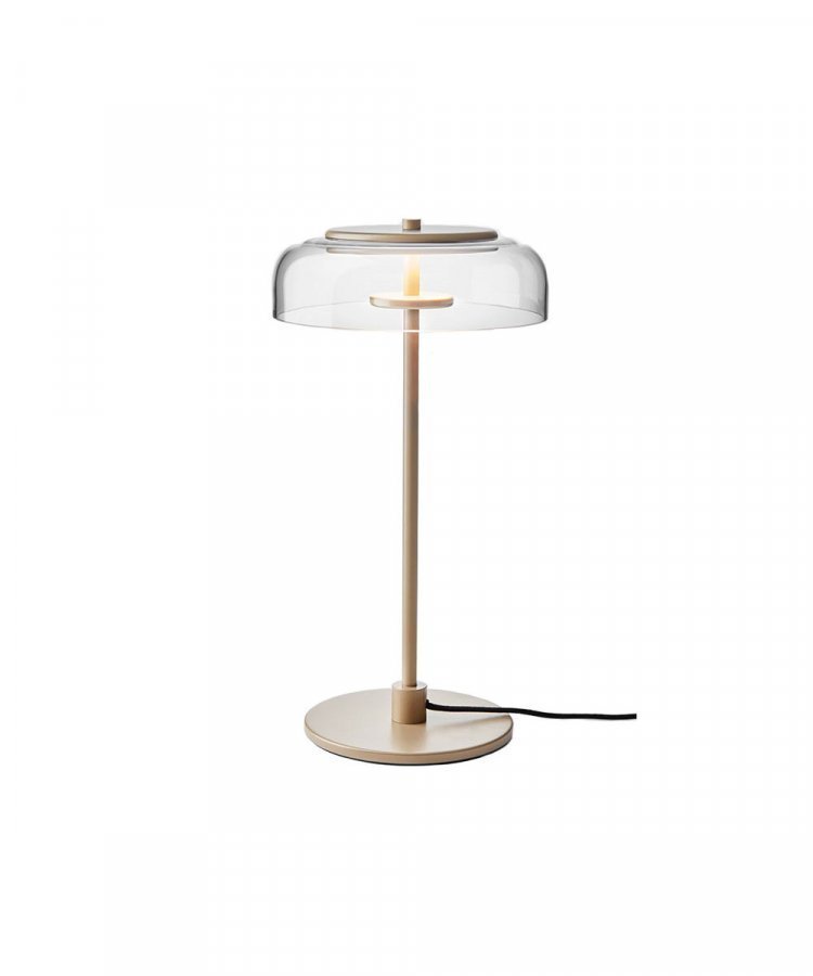 Design: Sofie Refer for Nuura. Konsepti: Blossi pöytävalaisin koostuu kirkkaasta käsin puhalletusta lasista ja ja jauhelakatusta metallista värissä Nordic Gold. Valaisimessa on sisäänrakennettu LED-valonlähde, jonka antama valo paistaa varjostimen alla olevalta metallilevyltä ja heijastuu varjostimen metallista ja lasista. Tuloksena on miellyttävä epäsuora valo. Käytä pöytävalaisinta antamaan pehmeää valoa olohuoneeseen tai aulaan. Se löytyy nykyään myös Tanskan parlamentista. Voidaan yhdistää himmentimeen.