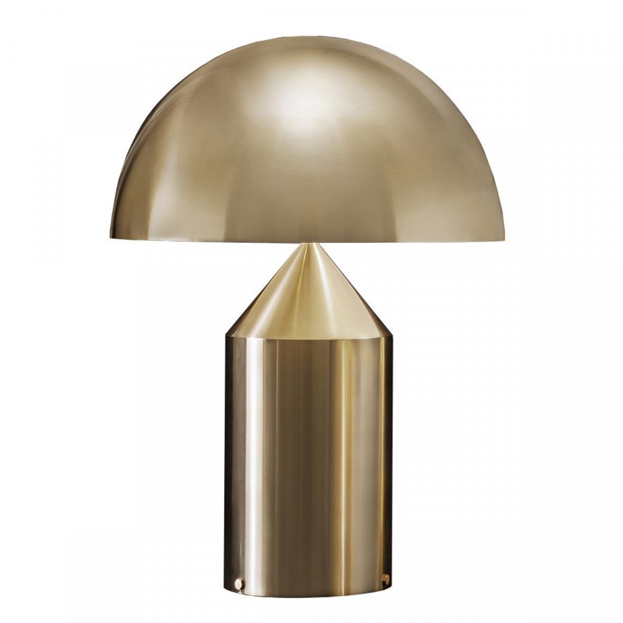 Atollo 239 -pöytävalaisin ihastuttaa kullanvärisellä hohdollaan ja 50 cm korkeudellaan. Vico Magistrettin vuonna 1977 italialaiselle Olucelle suunnitteleman Atollo-valaisimen on sanottu mullistaneen käsitystämme klassisesta pöytävalaisimesta. Geometrisiä sylinterin, kartion ja puolipallon muotoja yhdistelevä Atollo on samaan aikaan äärimmäisen pelkistetty ja näyttävä valaisin, josta on tullut yksi italialaisen designin ikoneista. Atollo palkittiin vuoden 1979 Compasso d’Oro -muotoilupalkinnolla ja se kuuluu useiden taidemuseoiden pysyviin kokoelmiin.