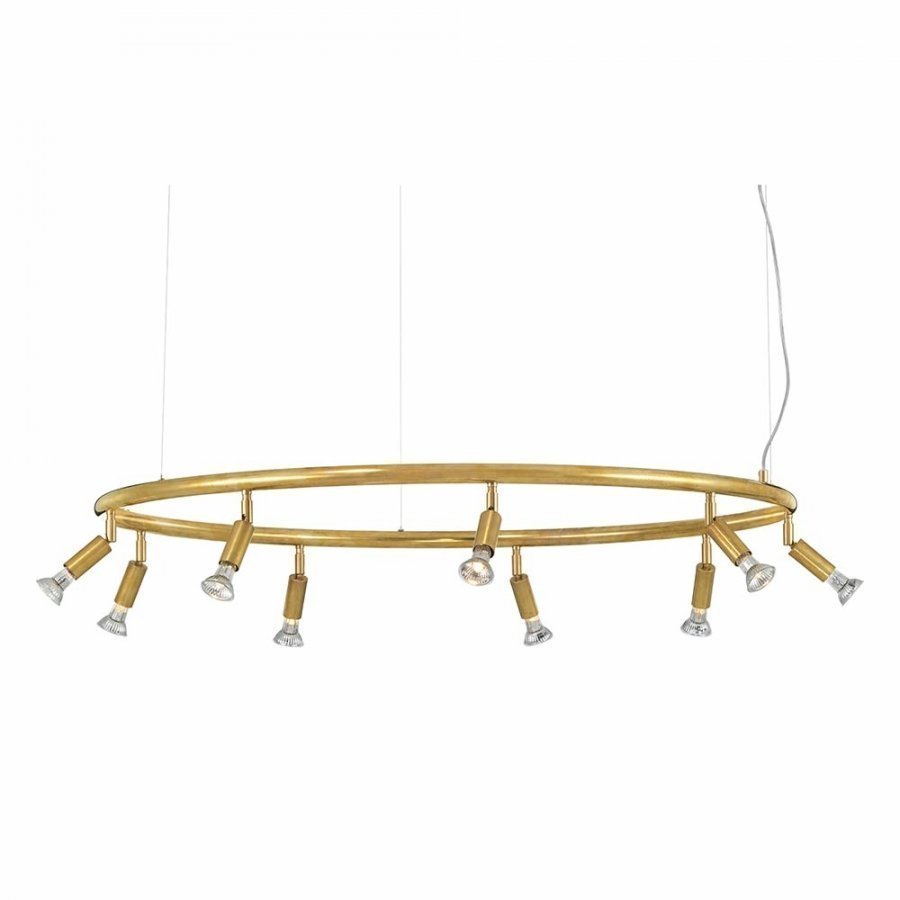 9 valopistettä. Himmenettävä. Liitäntä: 3 johto maadoitetulla koskettimella. Valmius vaijeriripustukseen. Kiinnitys kiinnityshihnalla. Valolähde: 9x40W E14 HALOPAR 16. Korkeus 22 cm, Ø = 100 cm.