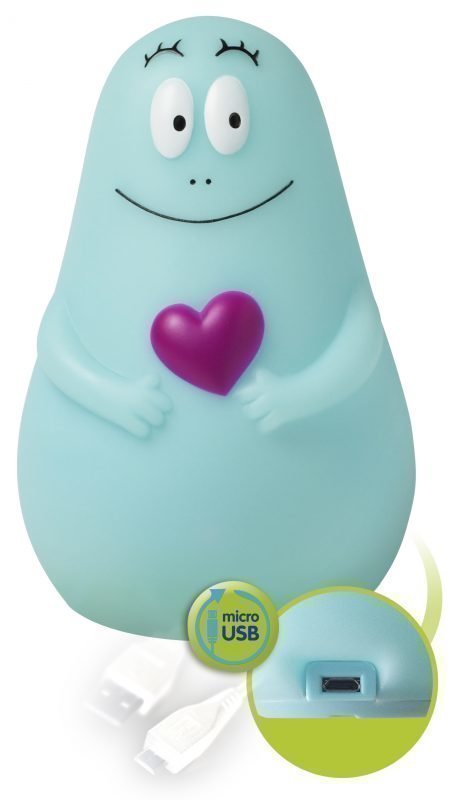 Lumiloven Barbapapa on uudenlainen yövalo lapsille. Pehmeä ja muodoiltaan pyöreä valaisin on päivän aikana mukana lasten leikeissä ja antaa yöaikaan turvallisen ja lempeän valon. Lumiloven Barbapapa-yövaloa on helppo kantaa mukana ja sen voi turvallisesti antaa lapsen viereen sänkyyn. Suositun, latausjalustalla varustetun Barbapapa-yövalaisimen edelleen kehitelty versio, jonka voi ladata helposti tietokoneella tai matkapuhelimen laturilla (mikro-USB). – Valaisee jopa 12 tuntia – Energiaa säästävä LED-lamppu (3 W) – Helppo ladata puhelimen laturilla (mikro-USB) Paino: 180 g Koko: n. 14 cm