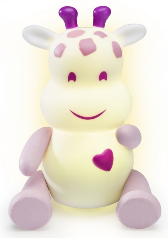 Pabobon Savanoo-yövalo herttaisen kirahvin hahmossa. Kirahvin voi asettaa joko seisomaan tai istumaan. Valloittavalla hahmolla on liikuteltavat kädet ja jalat. Valo hohtaa pehmeästi sateenkaaren väreissä tai vaihtoehtoisesti lapsi voi itse valita mieleisensä värin painamalla hahmoa kevyesti päästä. Kuten kaikki Pabobon tuotteet, myös tämä yövalo on suunniteltu lapsen tarpeet huomioiden. Savanoo-eläinvalaisimet eivät kuumene päällä ollessaan, joten pimeää huonetta arasteleva lapsi voi ottaa valoa hohtavan kaverin mukaansa peiton alle. . Liikuteltavat jalat &