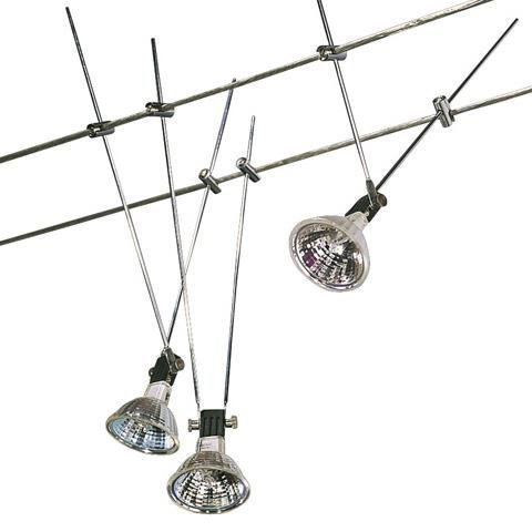 Paulmannin Nice Price sarjaan kuuluva vaijerilla ja muuntajalla oleva kromin värinen kolmen halogeenin