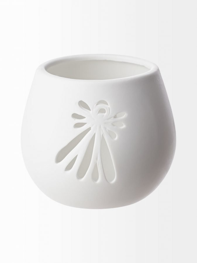 Keraaminen kynttilälyhty sopii tavalliselle lämpökynttilälle. Halkaisija on 7 cm ja korkeus 8,5 cm.
