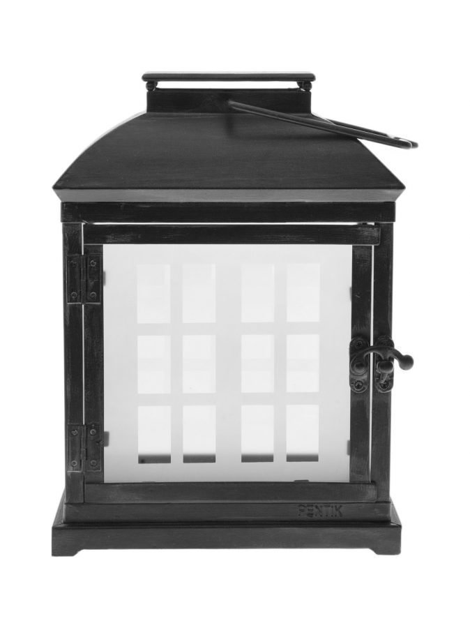 Tyylikkään lyhdyn etupuolella on avattava ovi ja päällä kantokahva. Rustiikkisen lyhdyn materiaali on metallia ja lasia.