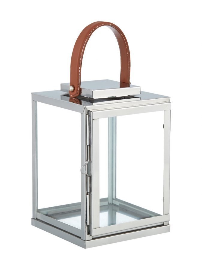 Tunnelmallisessa lyhdyssä on nahkainen kantokahva, kirkkaat lasiseinät ja avattava luukku. Materiaali on nahkaa, lasia ja ruostumatonta terästä.1TER0601A01