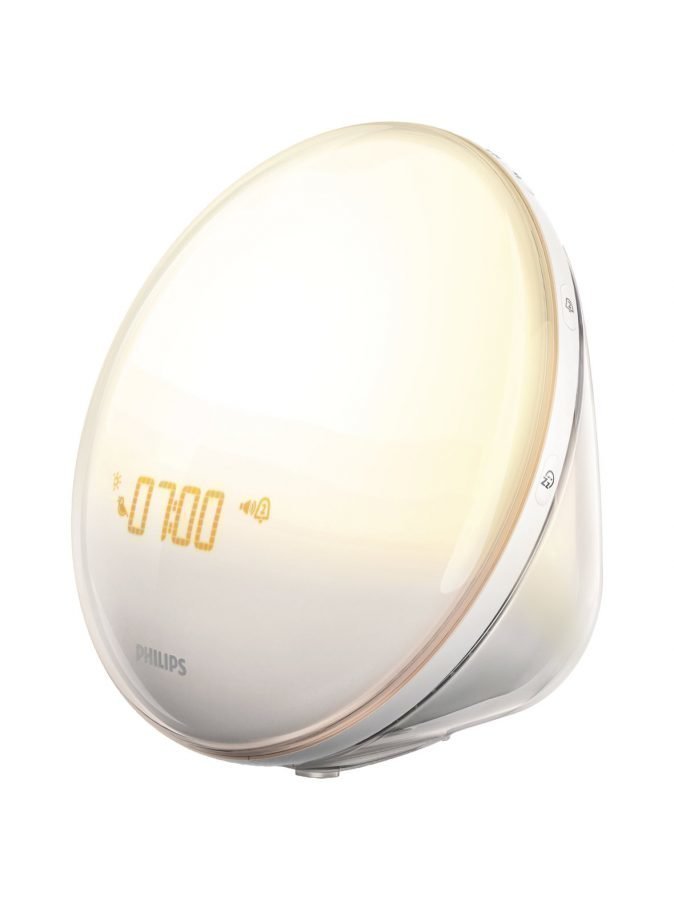 Wake-Up Light on makuuhuoneen katseenvangitsija. Tyylikäs muotoilu ja kätevät toiminnot auttavat sinua heräämään pirteänä jokaisena aamuna. Wake-Up Light käyttää energiatehokasta LED-tekniikkaa ja sen valaistus simuloi auringonnousua alkaen punaisesta väristä päätyen kirkkaan keltaiseen, illalla voit myös valita auringonlaskusimulaation. Auringonnoususimulaation voit säätää kestämään 20-40 minuuttia. Herätysvalossa on myös FM-radio, torkkutoiminto ja viisi eri herätysääntä. Näytön kirkkaus säätyy itsestään ja kirkkausasetuksia on 20. Valoteho 300 luksia.