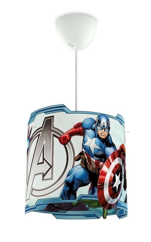 Philipsin Avengers-kattovalaisin. Värikäs Marvel-riippuvalaisin heijastaa hauskoja kuvia lastenhuoneen seiniin. Riippuvalaisimessa on pitkä johto, joten voit asentaa sen haluamaasi korkeuteen. Seikkailuntäyteisiä ja jännittäviä unia Avenger-suosikkihahmojen seurassa! Huom. Valonlähde ei sisälly pakkaukseen! – Materiaali: synteettinen materiaali – Koko: 26-113,8 x 26 x 26 cm – Verkkovirta: 220-240 V – Vaihtolampun enimmäisteho: 23W – Korkeus säädettävissä asennuksen yhteydessä