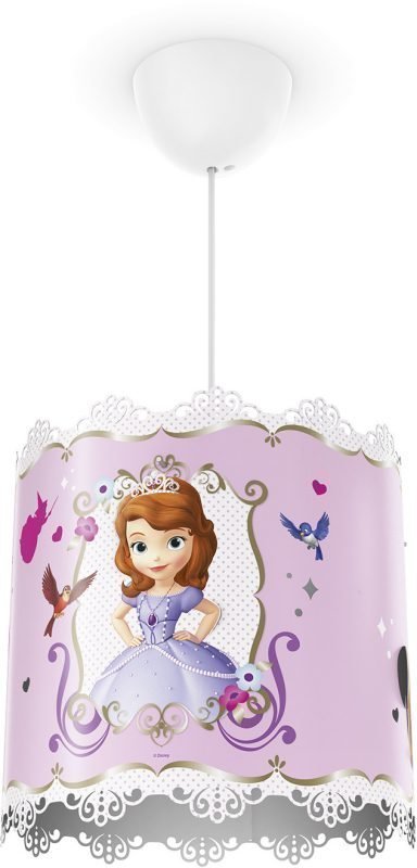 Philipsin Sofia Ensimmäinen -aiheinen kattovalaisin. Valaisimessa on hauska leikkaus, joka luo leikkisiä kuvioita makuuhuoneen seinille ollen samalla värikäs ja täynnä elämää. Lasten Sofia Ensimmäinen -suosikkihahmo inspiroi mahtavan hyviin uniin! – Koko: K33,8-143,8 x P26 x L26 cm – Verkkovirta: Vaihtovirta 220-240 V – Vaihtolampun korkein sallittu teho: 23 W – Asennettaessa säädettävä korkeus