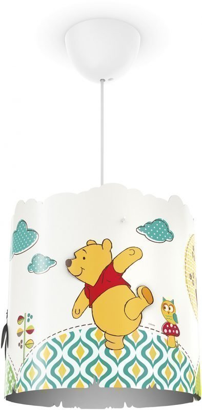 Philipsin Nalle Puh -aiheinen kattovalaisin. Valaisimessa on hauska leikkaus, joka luo leikkisiä kuvioita makuuhuoneen seinille ollen samalla värikäs ja täynnä elämää. Lasten Nalle Puh -suosikkihahmo inspiroi mahtavan hyviin uniin! – Koko: K33,8-143,8 x P26 x L26 cm – Verkkovirta: Vaihtovirta 220-240 V – Vaihtolampun korkein sallittu teho: 23 W – Asennettaessa säädettävä korkeus