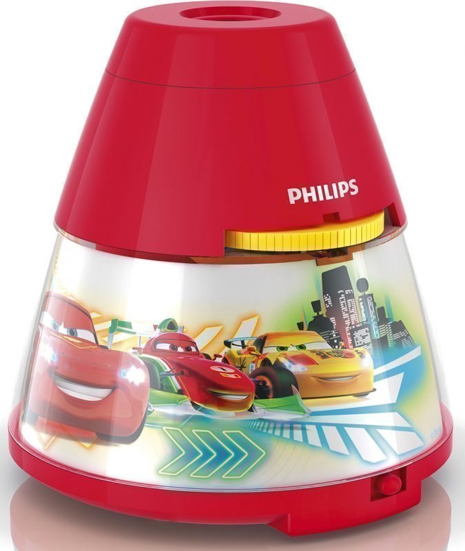 Philipsin Disney Autot -aiheinen yövalaisin-projektori-yhdistelmä. Projektori lumoaa lapset taianomaisilla tarinoillaan. Kun käännät sen kuvapyörää, se alkaa heijastaa Autot-tarinoita kattoon samalla, kun rauhoittava yövalaisin loistaa valoaan. – Luo taianomaisen ilmapiirin – Korkealaatuinen LED-valaisin – Lämmin, valkoinen valo – Paristokäyttöinen – 3 x AA-paristoa (eivät sisälly) – Mukana ylimääräinen kuvapyörä – Materiaali: synteettinen – Kaksinkertainen virrankatkaisija tuotteessa – Integroitu LED-valaistus – Koko: 11,8 x 11,5 x 11,5 cm – Verkkovirta: 4,5 V – Mukana toimitettavan lampun teho: 0,1 W – Vaihtolampun korkein sallittu teho: 0,1 W – Mukana toimitettavan lampun teho, 2: 0,3 W – Vaihtolampun korkein sallittu teho, 2: 0,3 W