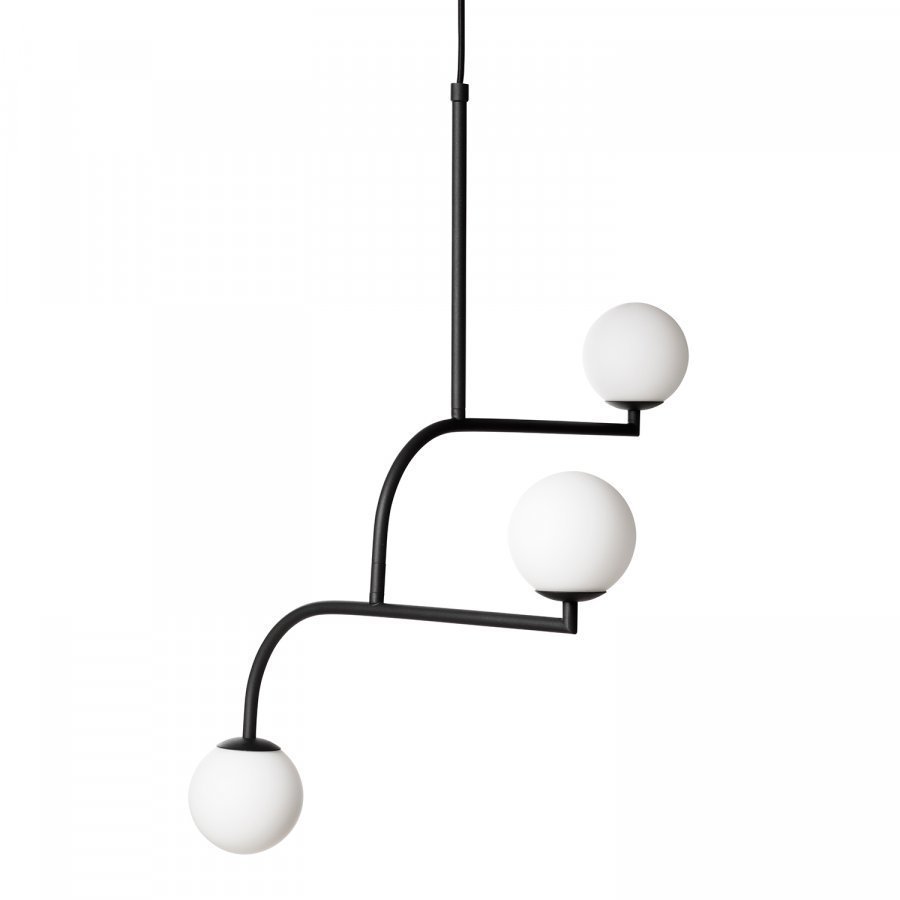 Mobil riippuvalaisin merkiltä Pholc. Tässä tyylikkäässä valaisimessa on kaunis muotoilu, jossa on pallomaiset lasiosat taivutetuilla varsilla. Opaalilasit ja metalliset varret täydentävät kauniisti toisiaan. Mukana tekstiilijohto. G9 valonlähde ei sisälly.