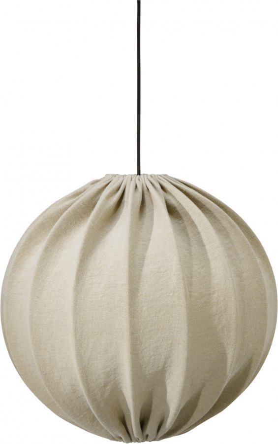 Kattovalaisin kivipestyä 100% pellavakangasta. Korkeus 40 cm, halkaisija 40 cm. Musta johto 1,2 m. Musta kattokuppi ja kruunupistoke mukana. E27 . Enintään 60 W. Lamppu ei ole mukana.