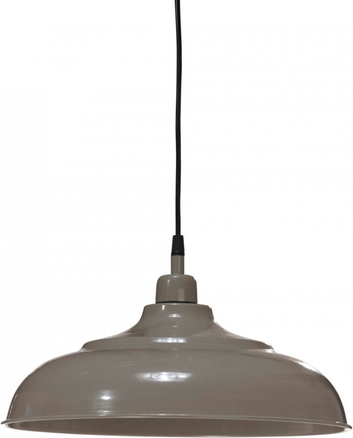 Kattovalaisin metallia, mukana kruunupistoke. Metallinen kattokuppi, jossa kiinnike kattokoukkua varten. Halkaisija 35 cm, korkeus 25 cm. Johdon pituus 120 cm. E27, enintään 40 W.