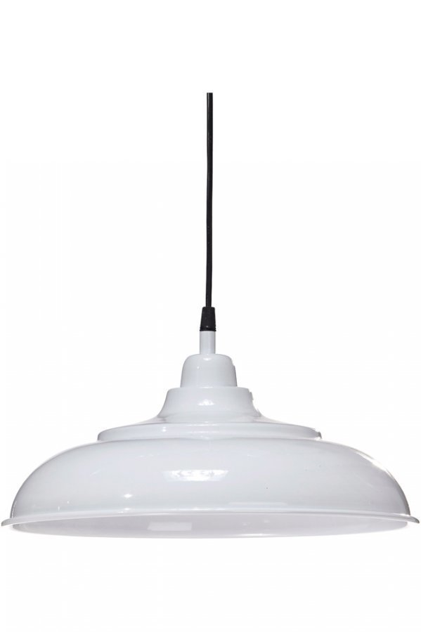 Kattovalaisin metallia. Kruunupistoke. Kattokuppi metallia, kiinnike kattokoukulle. Halkaisija 35 cm, korkeus 25 cm. Johdon pituus 120 cm. E27, enintään 40 W.