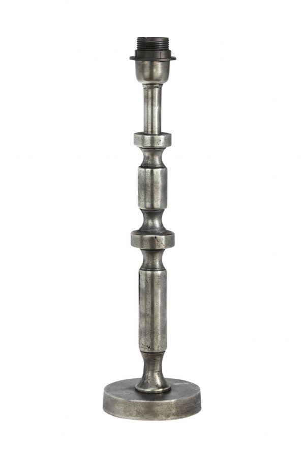Rustiikkinen metallijalka, jossa viimeistelemätön pinta. Korkeus 56 cm, halkaisija 12,5 cm. 2 m:n musta kangasjohto. E27, 40 W.