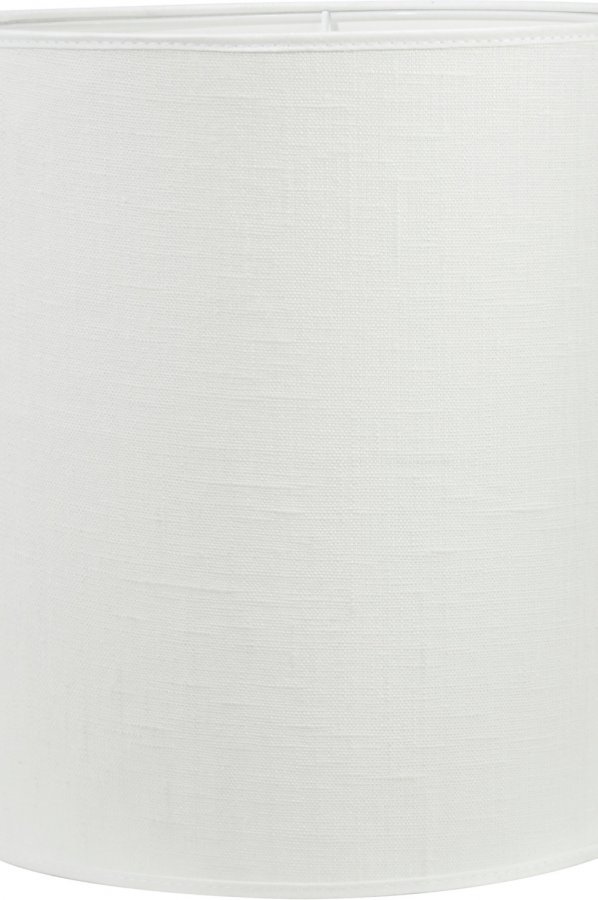 Sylinterin muotoinen pellavakangasvarjostin. Korkeus 21,5 cm, halkaisija 20 cm. E27.