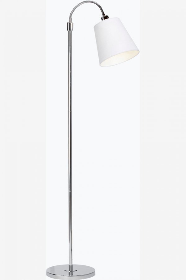 Cia-lattiavalaisin, jossa katkaisin varressa. Korkeus 160 cm, halkaisija 27 cm. E27, enintään 40 W. Varjostin pellavaa. Varjostimen korkeus 19 cm, halkaisija 22/9 cm.