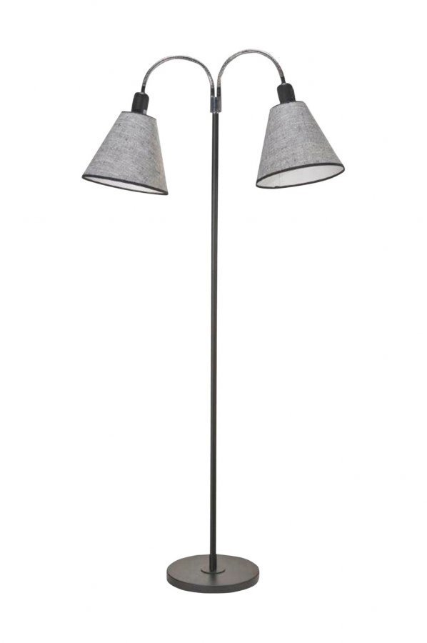 Lattiavalaisin, virtakytkin varressa. Korkeus 160 cm. Halkaisija 27 cm. E27. 40 W. 2 pellavavarjostinta. Varjostimen koko, korkeus 19 cm. Halkaisija 22/9 cm. Varjostimet mukana.