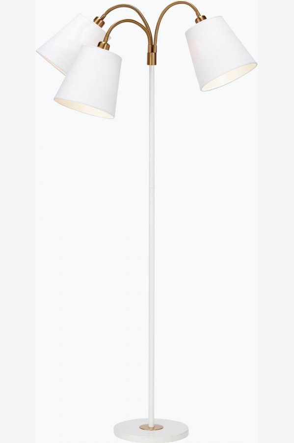 Cia-lattiavalaisin, 3-haarainen. Katkaisin varressa. Korkeus 160 cm, halkaisija 27 cm. E27, enintään 40 W. 3 Cia-varjostinta, väri Classico valkoinen. Korkeus 19 cm, halkaisija 20/13 cm.