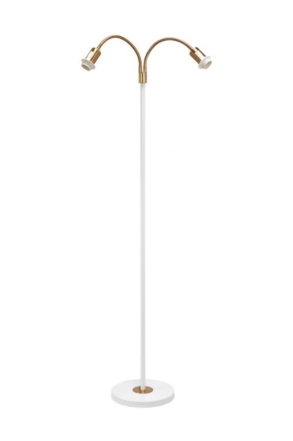 Kauniin linjakas kaksiosainen lattiavalaisin metallia. Taipuisia varsia voidaan säätää haluttuun asentoon. Kummassakin varressa on katkaisin. Korkeus 160 cm, halkaisija 27 cm. E27, enintään 40 W.