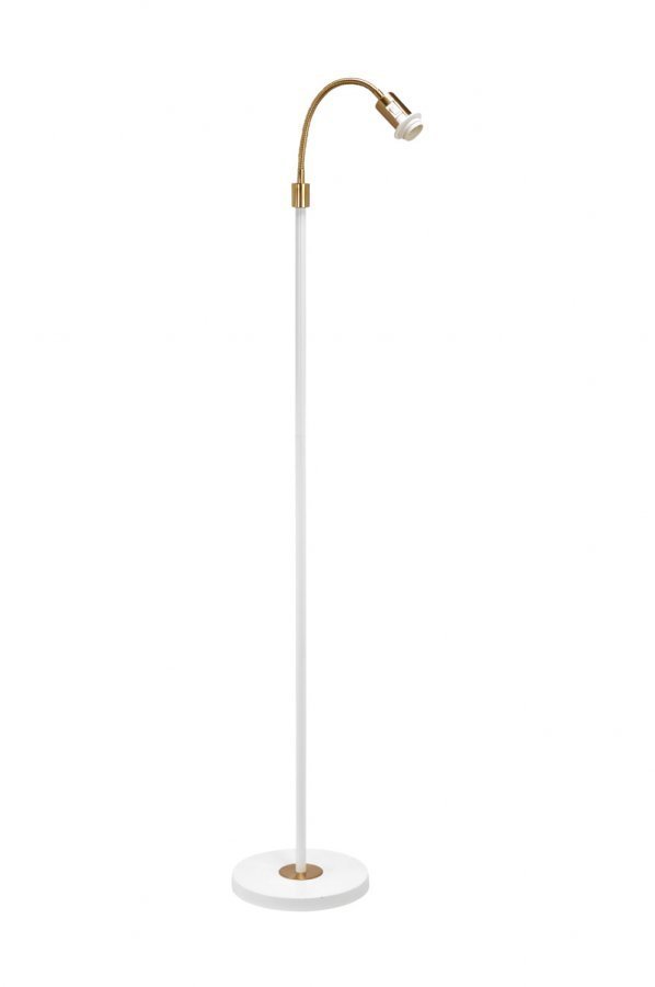Kauniin linjakas yksiosainen lattiavalaisin metallia. Lattiavalaisimen taipuisaa yläosaa voidaan säätää, ja katkaisin on varren päässä. Korkeus 160 cm, halkaisija 27 cm. E27, enintään 40 W