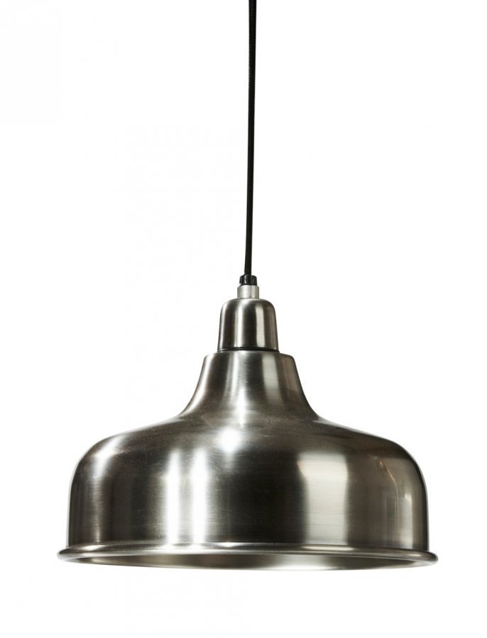 Kattovalaisin antiikkihopeanväristä metallia. Kruunupistoke. Metallinen kattokuppi ja kiinnike kattokoukulle. Halkaisija 26 cm, korkeus 19 cm. Johdon pituus 100 cm. E27. Enintään 40 W.