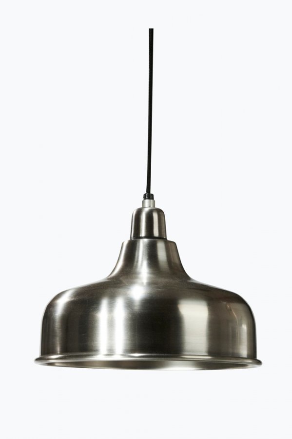 Kattovalaisin antiikkihopeanväristä metallia. Kruunupistoke. Metallinen kattokuppi ja kiinnike kattokoukulle. Halkaisija 26 cm, korkeus 19 cm. Johdon pituus 100 cm. E27. Enintään 40 W.