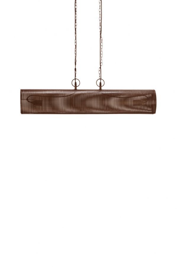Hollow-kattovalaisimessa on rei itettyä metallia ja räväkkä teollinen tyyli, joka antaa upean ilmeen kotiisi. Hollowsta on saatavana 2 vaihtoehtoa. Pöytävalaisin, jonka voi asettaa pystyyn tai ripustaa sekä pitkänomainen kattovalaisin. Korkeus 110 cm, leveys 85 cm, syvyys 17 cm. Kattovalaisimessa on 2 E27-lampunpidikettä molemmilla puolille, enintään 40 W. 80 cm:n ketju, sopii kiinteään asennukseen.