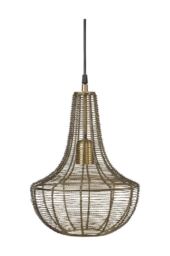 Kattovalaisin kierrettyä metallilankaa, E27/iso lampunkanta. 40 W. 1,6 m:n johto ja varjostimen kanssa samanvärinen kattokuppi. Korkeus 35 cm, halkaisija 25 cm.