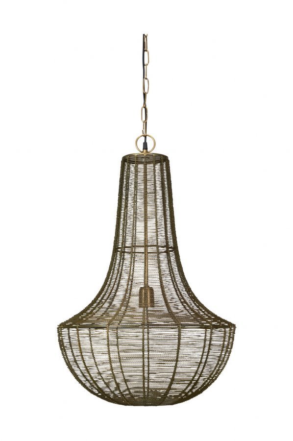 Kattovalaisin kierrettyä metallilankaa, E27/iso lampunkanta. 40 W. 1,2 m:n ketju ja valaisimen kanssa samanvärinen kattokuppi. Korkeus 50 cm, halkaisija 35 cm.