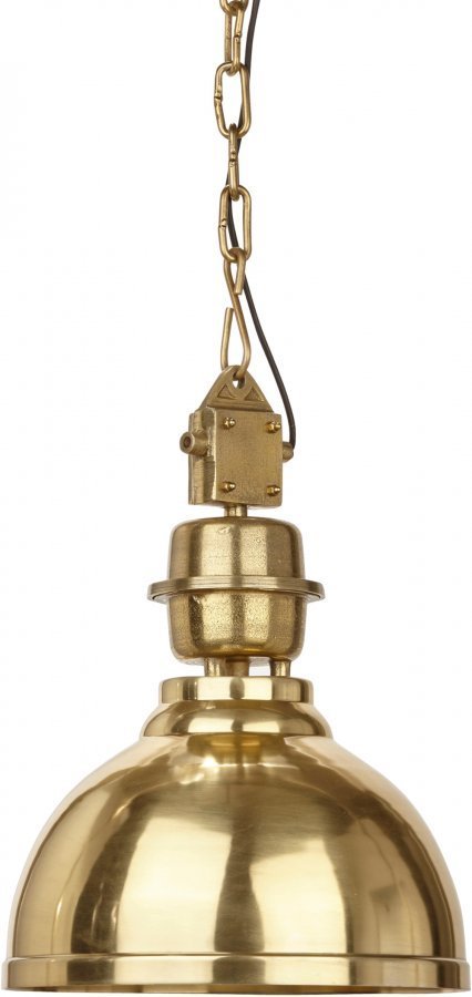 Kattovalaisin metallia, mukana kruunupistoke. Metallinen kattokuppi, jossa kiinnike kattokoukkua varten. Kullanvärinen sisäpinta. Halkaisija 52 cm, korkeus 56 cm. Johdon pituus 100 cm. E27, enintään 40 W.