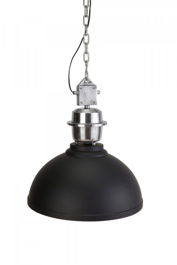 Kattovalaisin metallia. Mukana kruunuvalaisinpistotulppa. Kattokuppi metallia, kattokoukun kiinnike. Hopeanvärinen sisäpuoli. Halkaisija 35 cm, korkeus 50 cm. Johdon pituus 100 cm. E27 enintään 40 W.