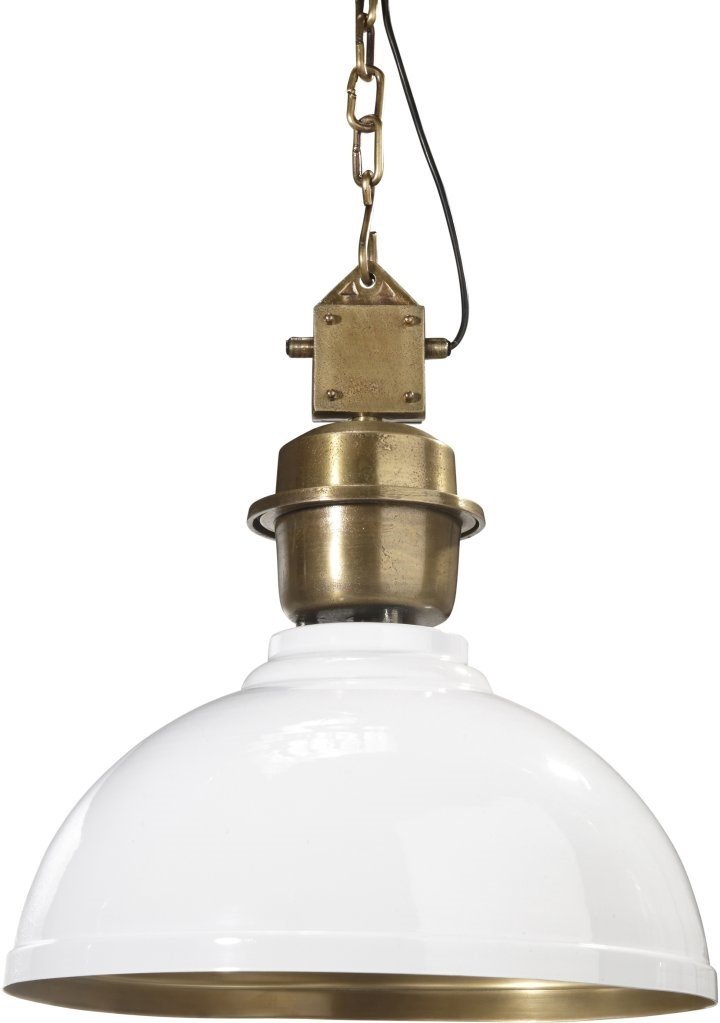 Kattovalaisin. Väri: valkoinen / messinki.E27. Max 40W. 1,2 m ketju ja raakamessinkinen kattokuppi + pistoke.Materiaali: metalli, messinki. Halkasija: 52 cm, korkeus: 56 cm.
