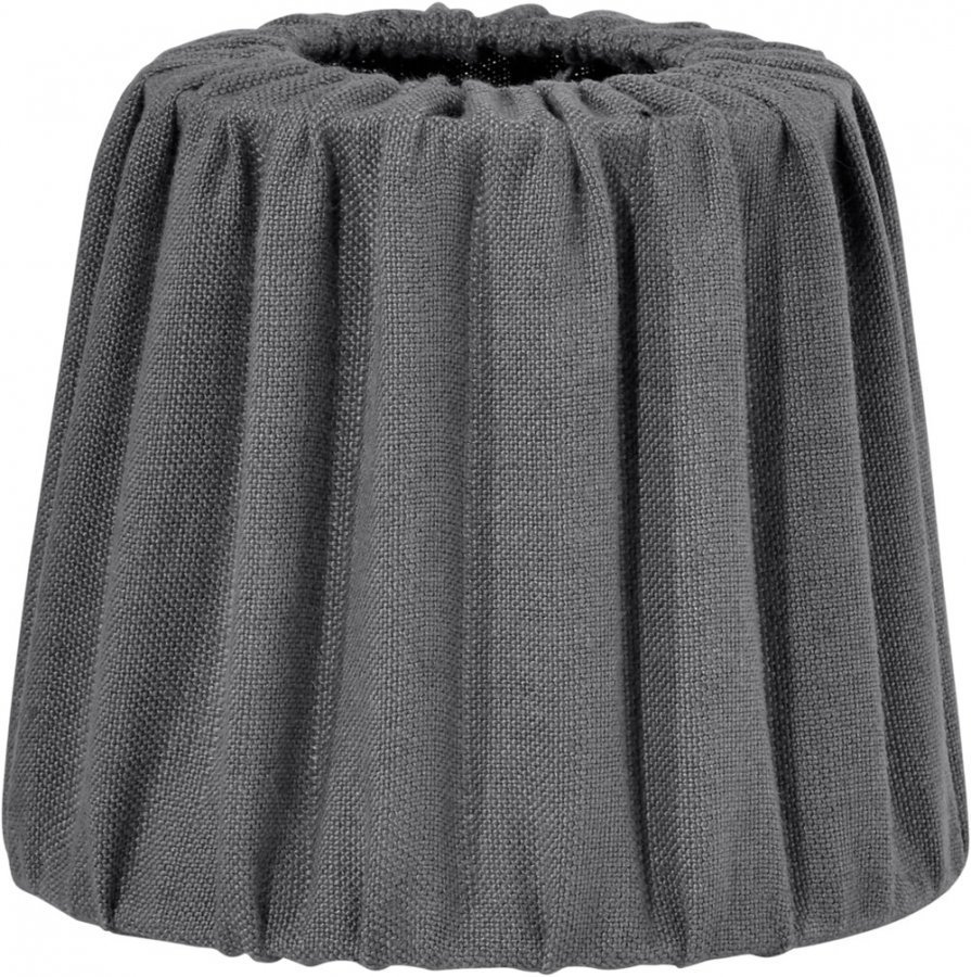 Mia-lampunvarjostin. Pyöreä, laskostettu varjostin 100% kivipestyä pellavaa. Korkeus 15 cm. Halkaisija alhaalta 17 cm, ylhäältä 12,5 cm. Pallolampun kiinnike 5 cm alareunasta.