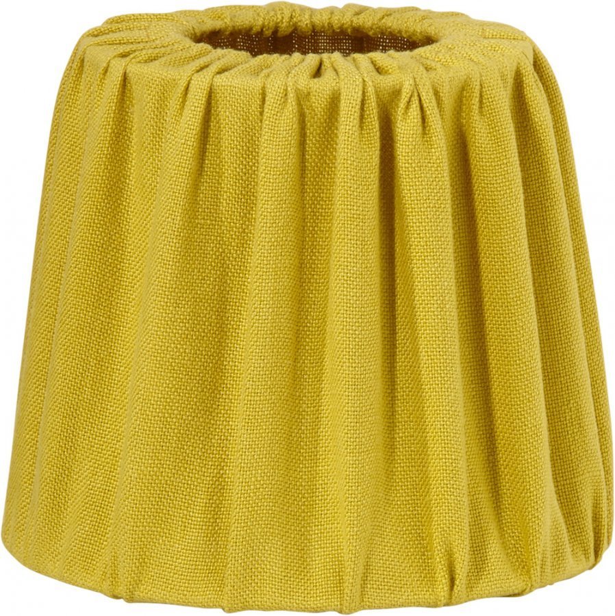 Mia-lampunvarjostin. Pyöreä, laskostettu varjostin 100% kivipestyä pellavaa. Korkeus 18 cm. Halkaisija alhaalta 20 cm, ylhäältä 14,5 cm. Pallolampun kiinnike 8 cm alareunasta.