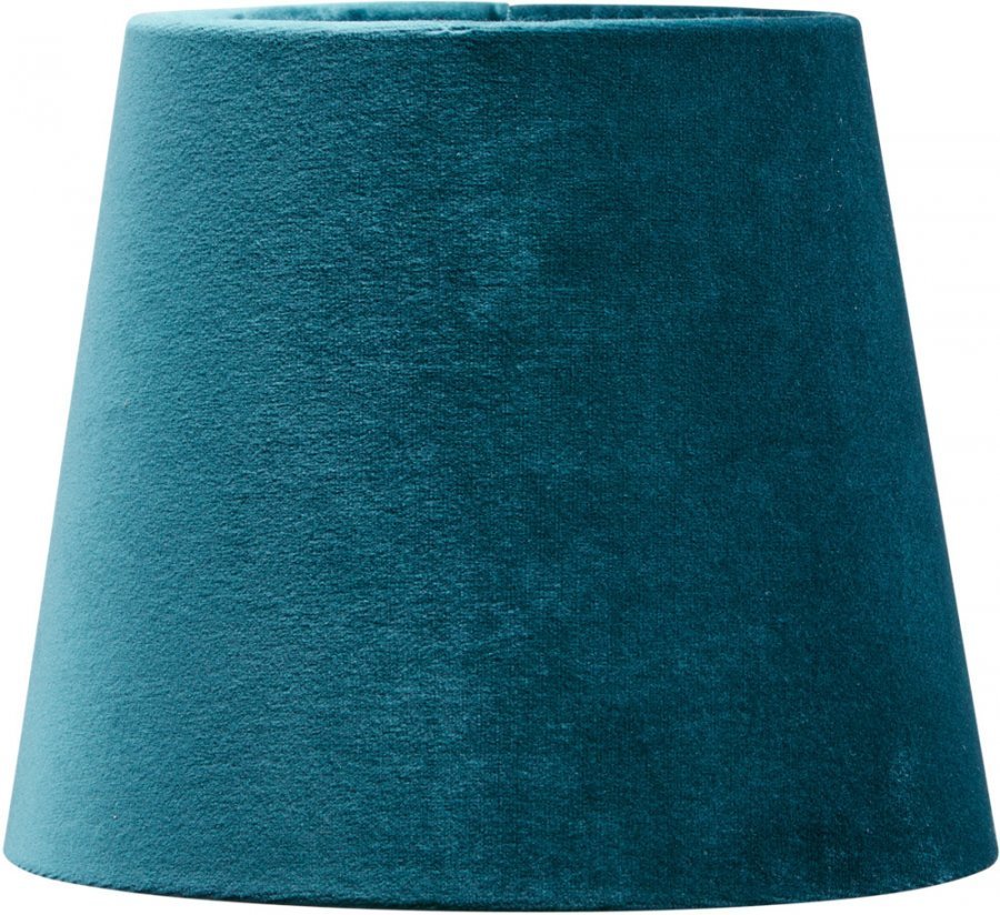 Mia-varjostin. Pyöreä lampunvarjostin sileää samettia. Korkeus 14,5 cm. Alareunan halkaisija 17,5 cm, yläreunan 13 cm. Pallolampun kiinnike 5,5 cm alareunasta.