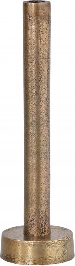 Notice-kynttilänjalka rosoista metallia. Korkeus 35 cm. Halkaisija 10 cm. Kruunukynttilälle.