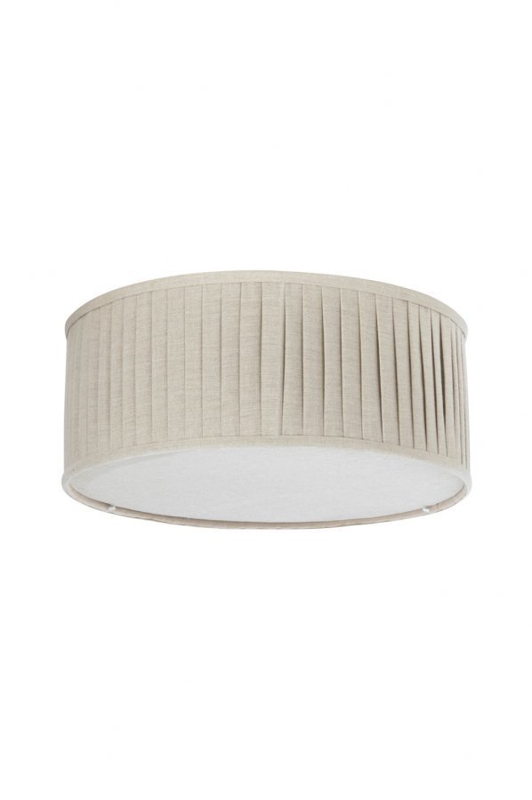 Hieno ja tyylikäs plafondi ihanaa pellavakangasta. Kattolamppuun tarvitaan 3 hehkulamppua, joissa on E27-lampunkanta, enintään 60 W. Korkeus 18 cm, Ø 45 cm.