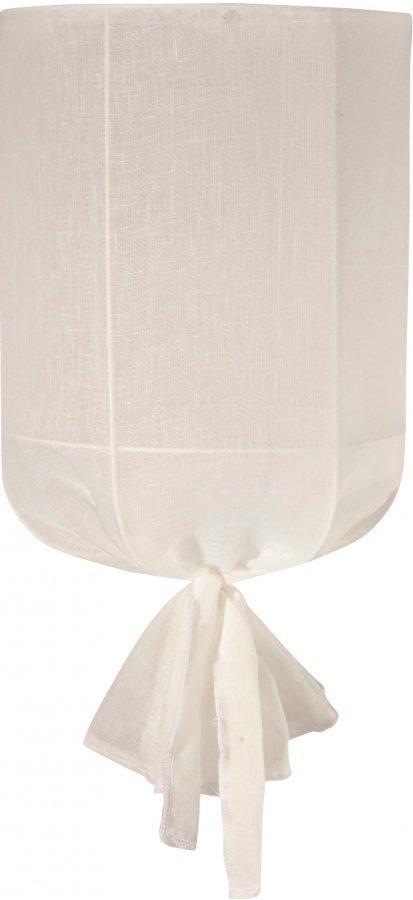 Kattovalaisin kangasta. Pyöreä, halkaisija 30 cm, kokonaiskorkeus 60 cm mukaan lukien solmittu osa. Mukana valkoinen johto, pituus 1,2 m ja kruunupistoke. Kattokuppi valkoista muovia. E27. Enintään 60 W. Valkoinen, 100% polyesteriä. Luonnonvalkoinen 50% pellavaa, 50% puuvillaa. Monivärinen lintu- & kukkakuvioinen 100% puuvillaa.
