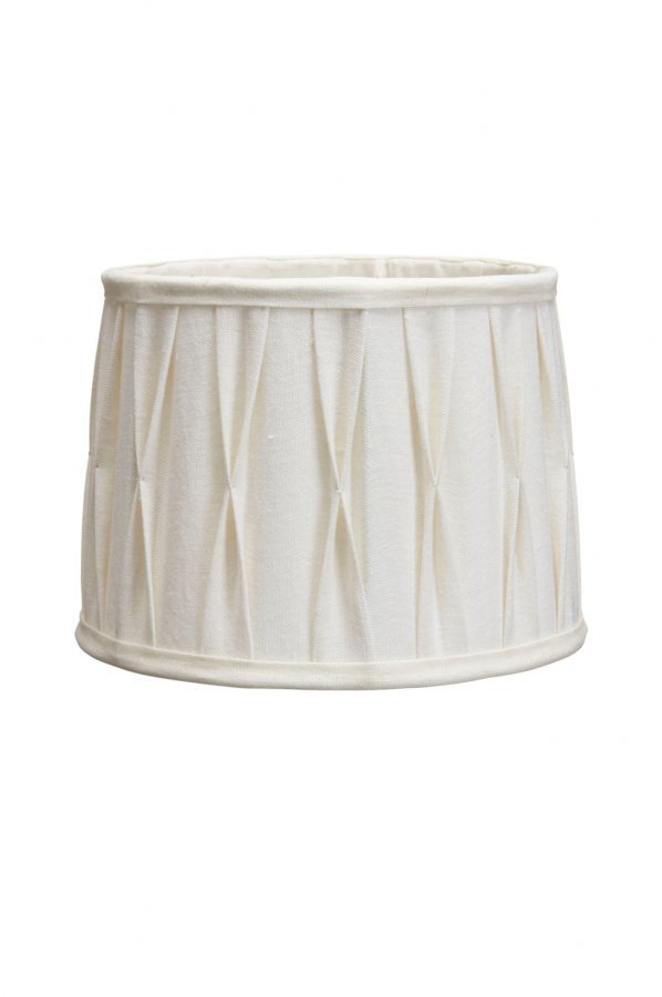 Sofia Plissé Stygn -lampunvarjostin. Pyöreä, korkeus 18 cm. Halkaisija alhaalta 25,5 cm, ylhäältä 22 cm. E27-rengaskiinnike 4,5 cm alareunasta.