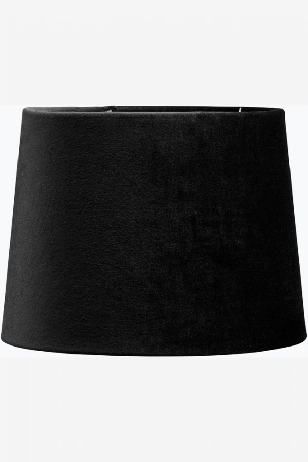Sofia-varjostin. Pyöreä lampunvarjostin sileää samettia. Korkeus 25 cm. Alareunan halkaisija 35 cm, yläreunan 30 cm. E27 rengaskiinnike 4,5 cm alareunasta. 100% polyesteriä