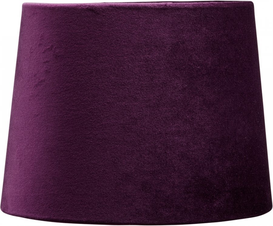 Sofia-varjostin. Pyöreä lampunvarjostin sileää samettia. Korkeus 25 cm. Alareunan halkaisija 35 cm, yläreunan 30 cm. E27 rengaskiinnike 4,5 cm alareunasta.